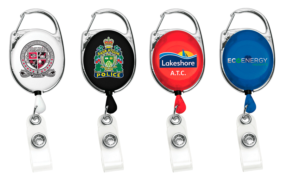 30" 4 Colour Process Carabiner Style Retractable Badge Reel with Metal Slip Clip